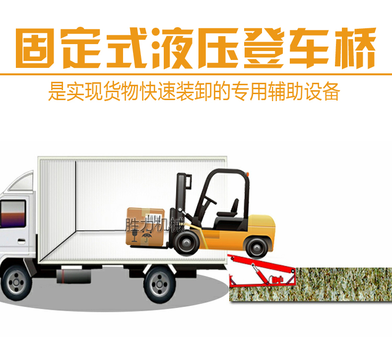 固定式登車橋是一種安裝在庫(kù)房月臺(tái)上的裝卸輔助設(shè)備,它不工作時(shí)與月臺(tái)地面平齊,裝卸作業(yè)時(shí)可根據(jù)貨車車廂的高度進(jìn)行調(diào)節(jié)登車橋的高度,使貨車與倉(cāng)儲(chǔ)的貨臺(tái)之間架起一座橋梁,叉車等搬運(yùn)車輛通過(guò)它能直接駛?cè)胴涇噧?nèi)部進(jìn)行貨物的批量裝卸作業(yè),僅需單人作業(yè),即可實(shí)現(xiàn)貨物的快速裝卸。固定式登車橋使企業(yè)減少大量勞力,提高工作效率,獲取更大經(jīng)濟(jì)效益。