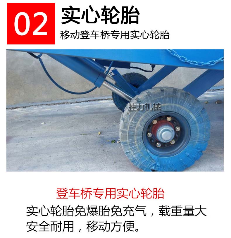 移動(dòng)登車橋也被稱作叉車裝卸專用平臺(tái),是裝卸貨物的專用液壓設(shè)備,設(shè)備帶有移動(dòng)輪,可隨時(shí)移動(dòng)到裝卸地點(diǎn)。移動(dòng)登車橋根據(jù)額定載重量可分為6噸、8噸、10噸、12噸、15噸,設(shè)備總長(zhǎng)11米,帶有坡度,叉車等搬運(yùn)車輛可通過移動(dòng)登車橋的坡度和高度直接駛?cè)胴涇噧?nèi)部進(jìn)行裝卸貨物作業(yè),在提高裝卸作業(yè)效率的同時(shí)又能充分保障作業(yè)安全。移動(dòng)登車橋無需外接電源,可通過手壓泵做動(dòng)力進(jìn)行能設(shè)備高度的調(diào)整,可以充分適應(yīng)各種不同高度的貨車。移動(dòng)登車橋加快裝卸貨物的速度,減少勞動(dòng)力,為企業(yè)獲取更大的經(jīng)濟(jì)效益。