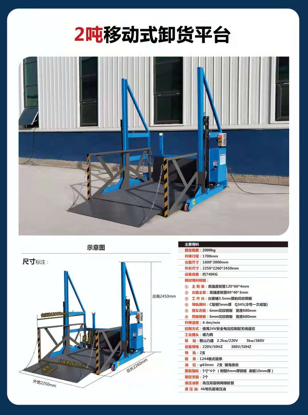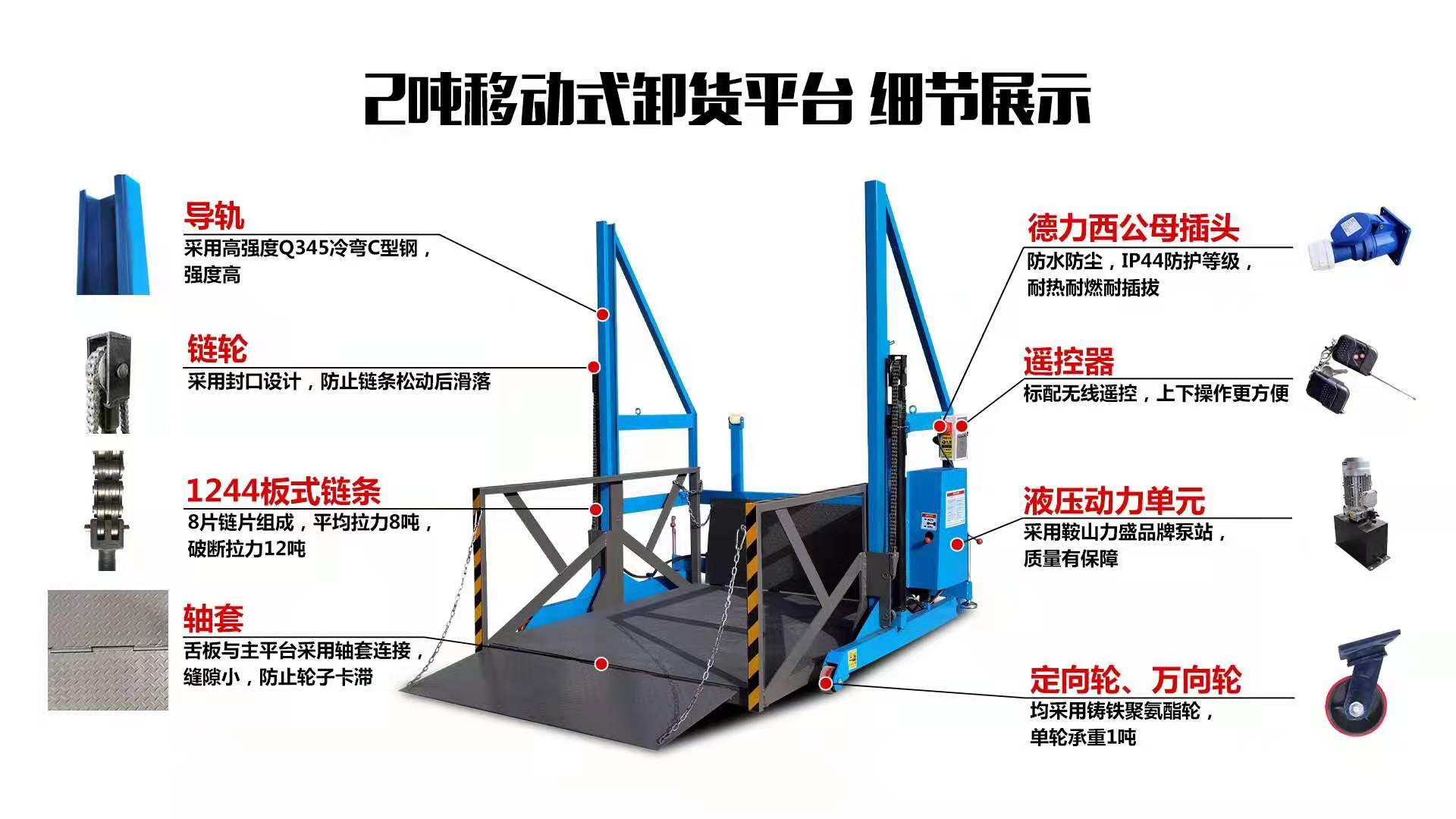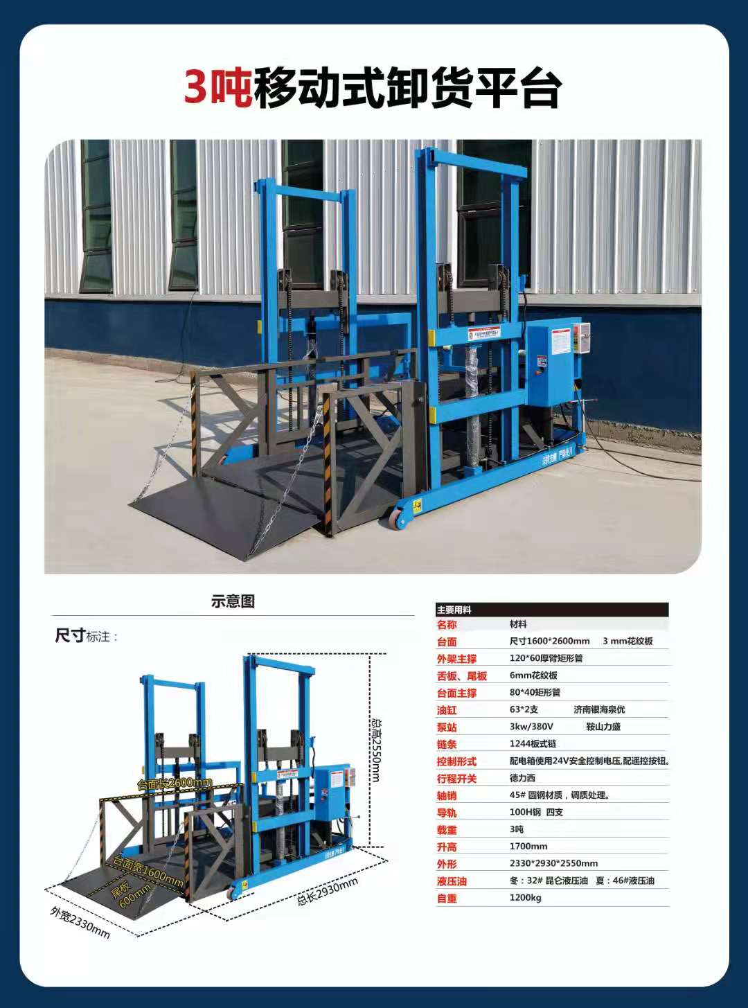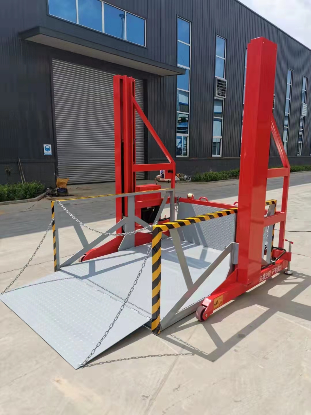 卸貨柜設(shè)備也可以叫做升降式卸貨平臺(tái),屬于可移動(dòng)升降平臺(tái)。卸貨柜設(shè)備擁有移動(dòng)靈活,升降平穩(wěn)的特點(diǎn)。被廣泛應(yīng)用于集裝箱與叉車(chē)等搬運(yùn)車(chē)輛配套進(jìn)行貨物的快速裝卸等。卸貨柜平臺(tái)的操作簡(jiǎn)單,把平臺(tái)移動(dòng)至需要裝卸貨物的車(chē)輛尾部,把叉車(chē)等貨物放入工作臺(tái)面上,一人通過(guò)無(wú)線遙控或工作臺(tái)面上的按鈕即可輕松把叉車(chē)等貨物升高至與車(chē)尾同等高度,使叉車(chē)與貨物輕松快速的駛?cè)胲?chē)廂內(nèi)部。